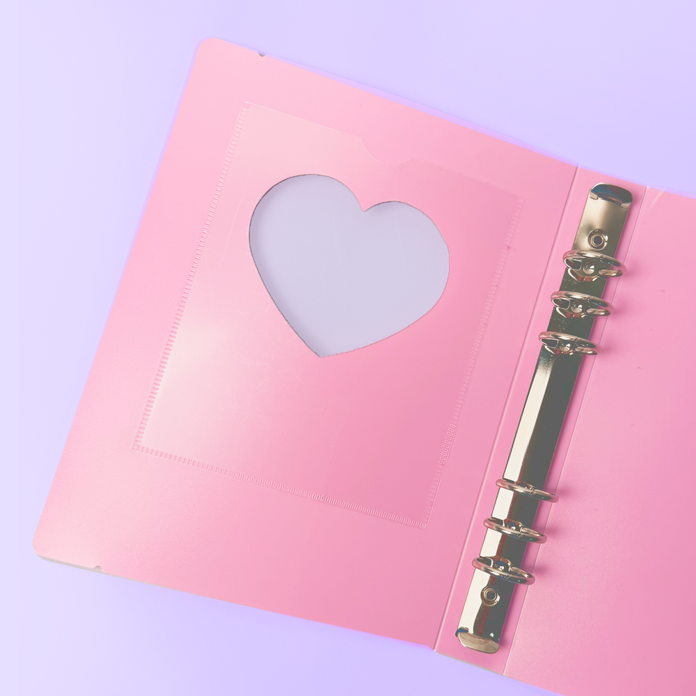Organiza tus photocards, notas o mini colecciones con el binder más adorable. Su estructura resistente, los anillos metálicos dorados y la ventana en forma de corazón lo convierten en el complemento ideal para guardar tus recuerdos con estilo. Perfecto para fans del K-pop, amantes del stationery o coleccionistas que buscan un toque tierno y elegante.