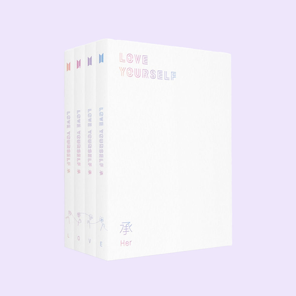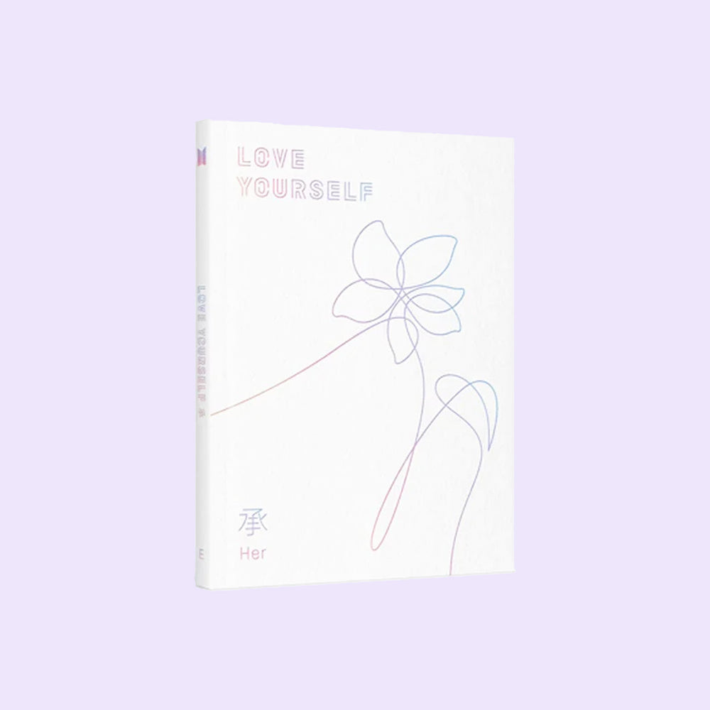 Love Yourself 承 'Her' es el quinto mini álbum del reconocido grupo surcoreano BTS, lanzado el 18 de septiembre de 2017 bajo Big Hit Entertainment. Este lanzamiento marcó el inicio de la influyente trilogía Love Yourself, ofreciendo un mensaje inspirador sobre la importancia del amor propio, acompañado por una mezcla irresistible de pop, EDM, hip-hop y baladas emotivas.