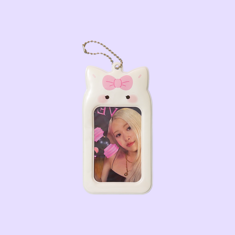 Este photocard holder de PVC está diseñado para proteger y lucir photocards de manera segura y estética. Su acabado suave, detalles en tonos rosados y diseño tipo gatito crean un accesorio encantador para decorar mochilas, llaveros o totes.