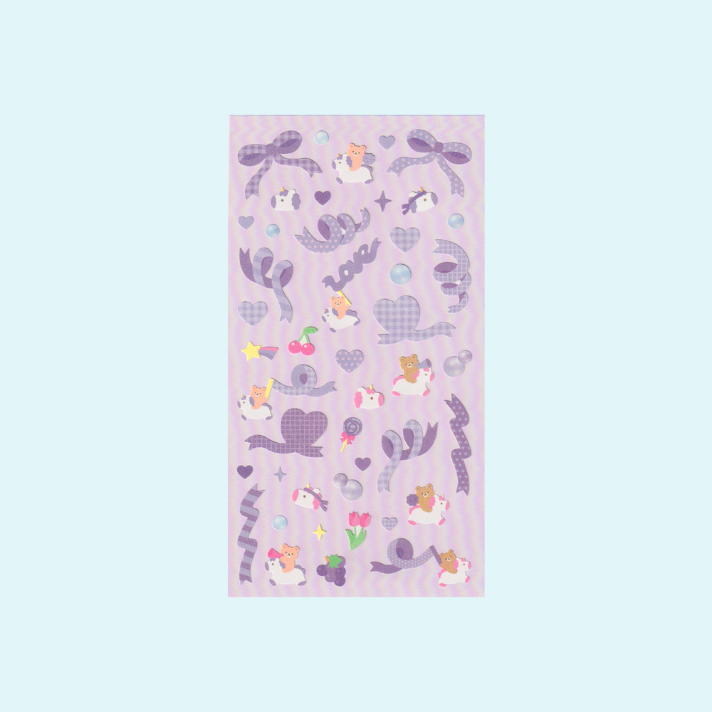 Dale un toque brillante y tierno a tu colección con esta hoja de stickers en vinil holográfico. Cada diseño combina ilustraciones de animalitos, moños, corazones y detalles encantadores que reflejan un estilo suave y soñador.