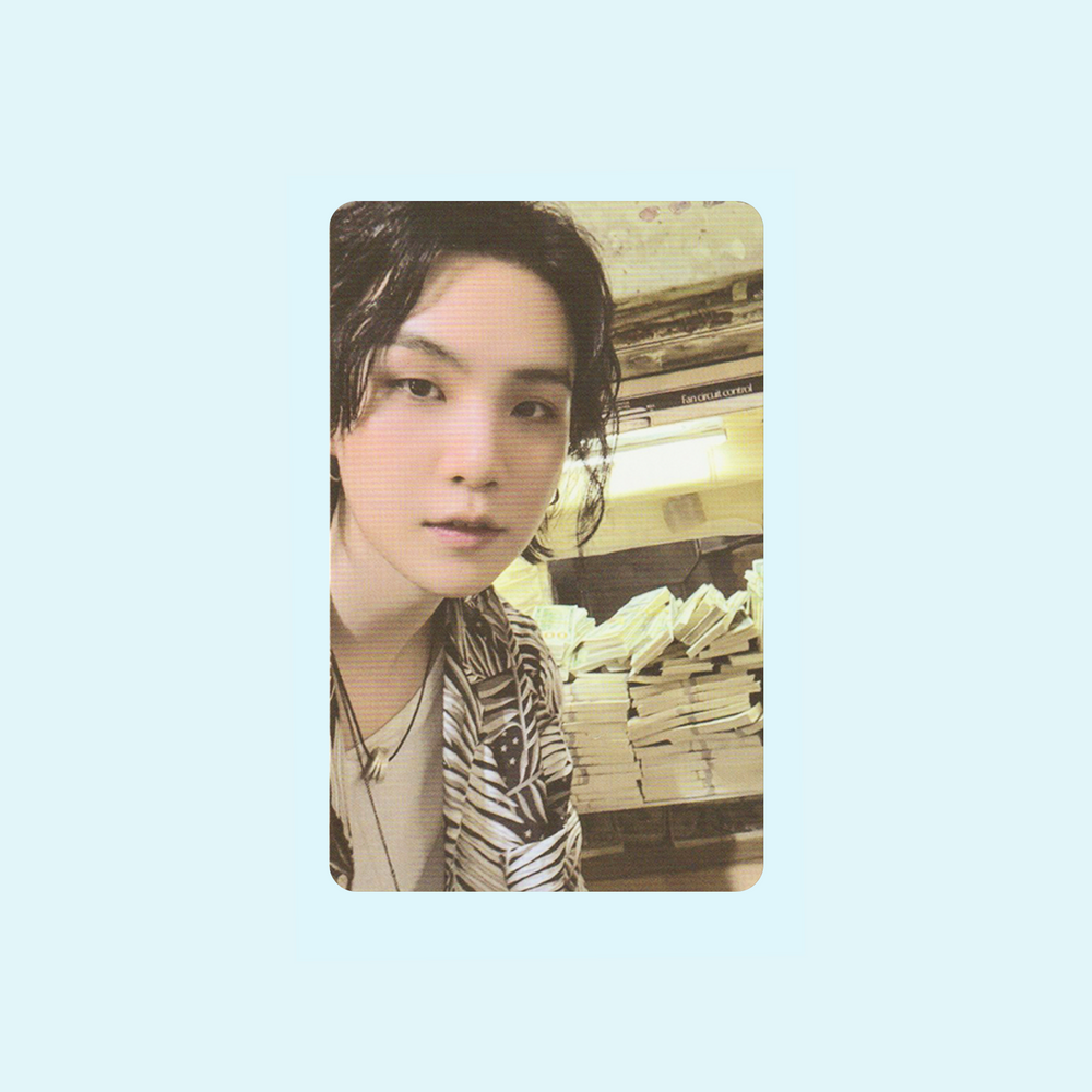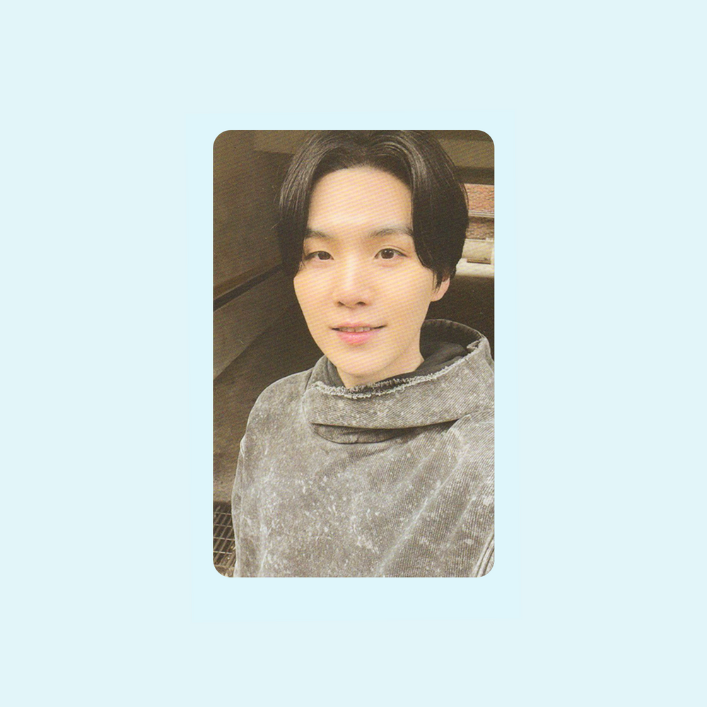 Explora esta selección de photocards originales de SUGA, miembro de BTS, con modelos oficiales coreanos y japoneses. Cada photocard muestra su estilo sobrio, mirada intensa y esa presencia tranquila pero poderosa que lo caracteriza.